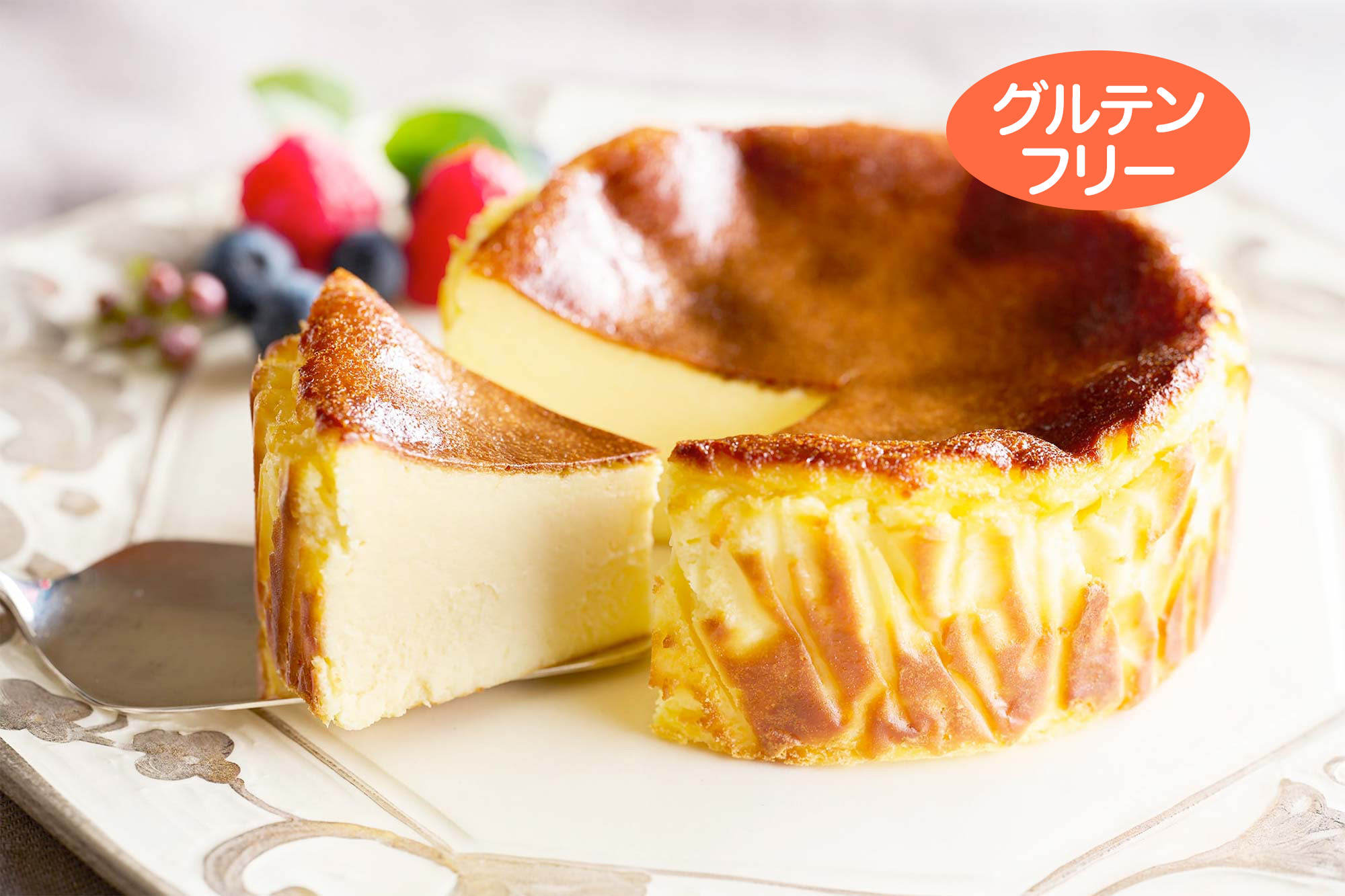 大人気「バスクチーズケーキ」を米粉を使用してつくりました。米粉ならではのもちもち食感をお楽しみください。