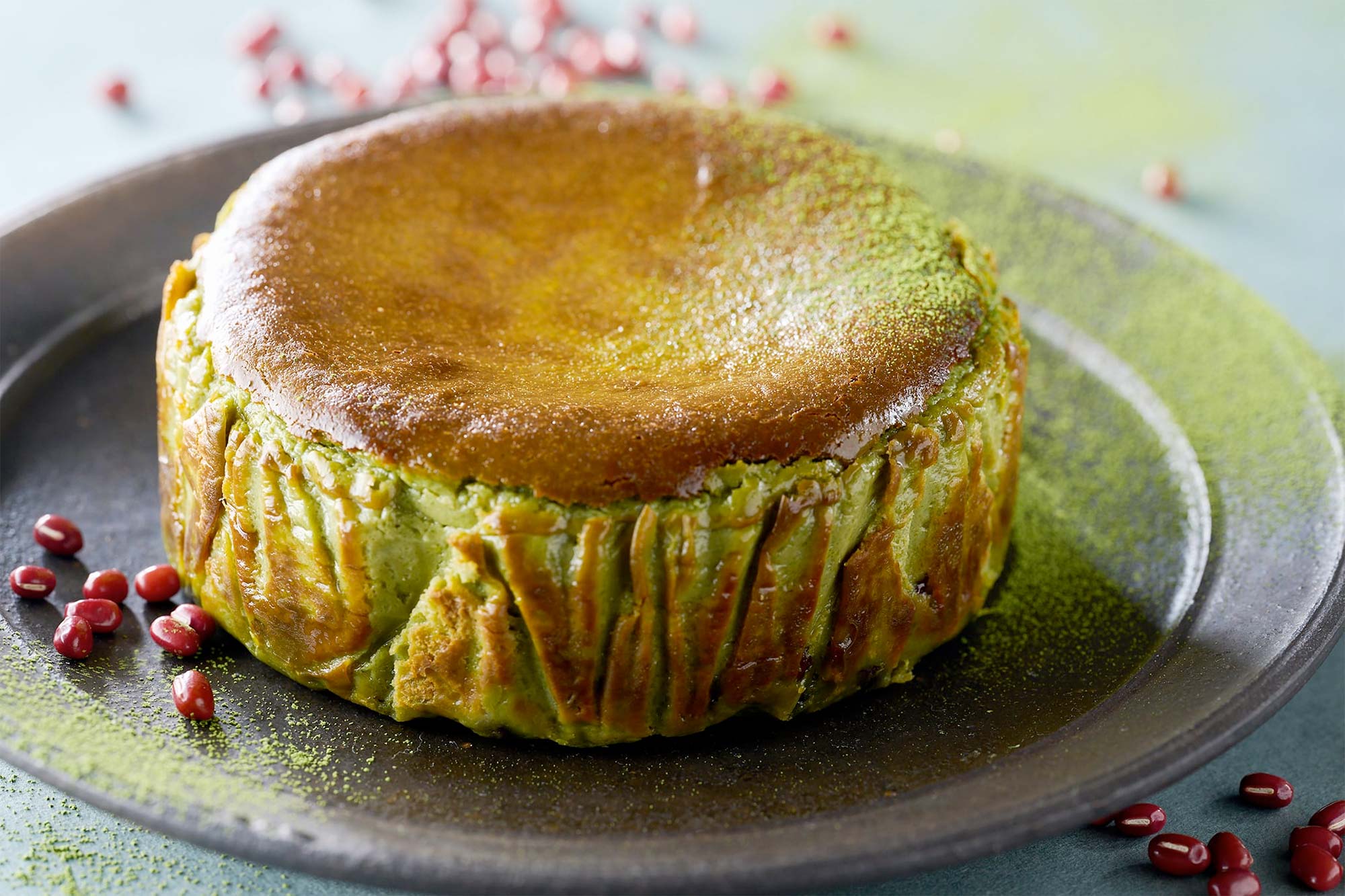 抹茶と小豆のバスクチーズケーキ
